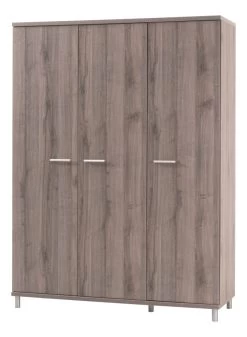 Deze kast heeft drie openslaande deuren van grijs houtlook met zilveren grepen. De binnenkant bestaat uit een groot hanggedeelte en een aantal planken. 3-Deurskast Naomi is goed te combineren met de andere meubels uit deze collectie: een meegroei ledikant, nachtkastje en commode. Ook verkrijgbaar als 3-delige set.