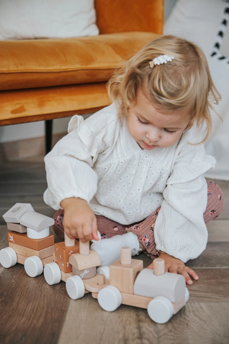 De houten trein is geschikt voor kindjes vanaf 18 maanden.