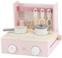 Je kleine zal zich een ware chef voelen als hij/zij aan het koken is op dit houten kookstel van Label Label! Deze compacte set heeft 2 kookpitten met draaiknoppen om ze in te stellen. Daarnaast is de set uitgerust met een steelpannetje, pannetje, peper- en zoutstel, een mes, spatel en een opscheplepel.Â